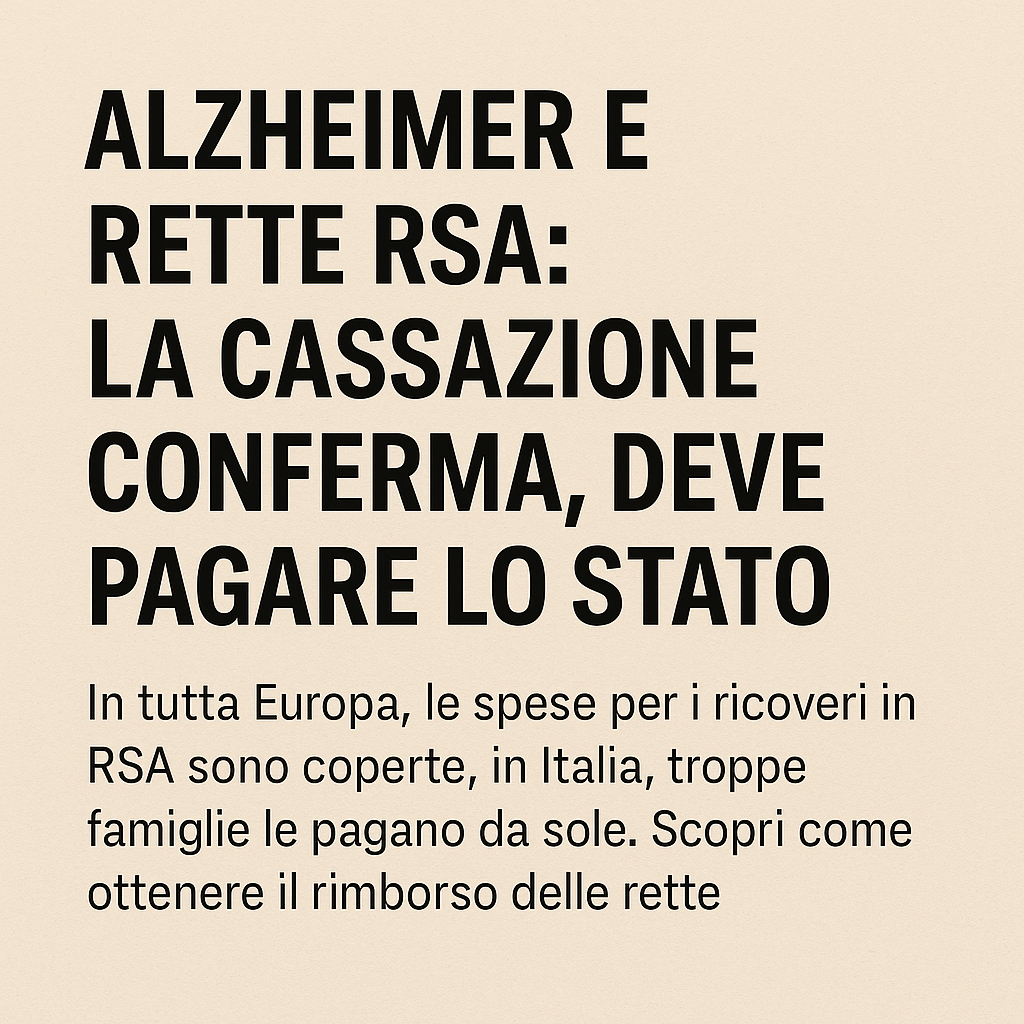 Negli ultimi anni la giurisprudenza ha fatto chiarezza: le spese per i ricoveri sanitari in RSA devono essere coperte dal Servizio Sanitario Nazionale. La Cassazione (sent. n. 26943/2024), il Consiglio di Stato (n. 3074/2025), il Tribunale di Grosseto (n. 152/2025) e la Corte d’Appello di Milano (n. 1644/2025) hanno ribadito un principio inequivocabile: quando la prestazione ha un forte contenuto sanitario, anche i costi cosiddetti “alberghieri” devono essere a carico dello Stato.