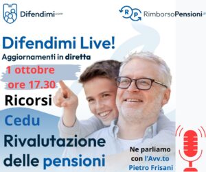 Nuova Diretta con l’Avvocato Pietro Frisani: aggiornamenti sulla questione Pensioni e novità importanti per le altre iniziative. Nasce Rimborso.EU