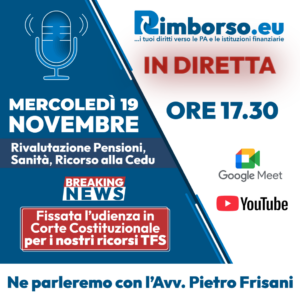 Partecipa alla diretta di Giovedì 19 novembre ore 17:30 Manovra, pensioni, CEDU e rette RSA: tutto quello che devi sapere per non restare indietro. È un autunno caldo sul fronte